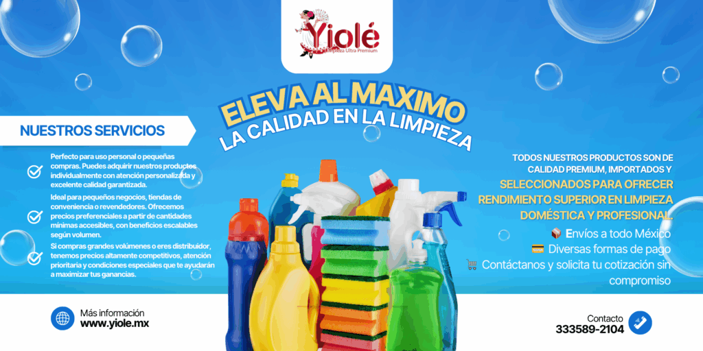 En Yiolé Limpieza Ultra Premium, nos dedicamos a ofrecer productos de limpieza de la más alta calidad para el hogar y negocios. Nos enorgullece llevar soluciones que combinan eficacia, innovación, garantizando espacios relucientes y saludables. Con Yiolé, transforma la limpieza en un momento de confort y seguridad.